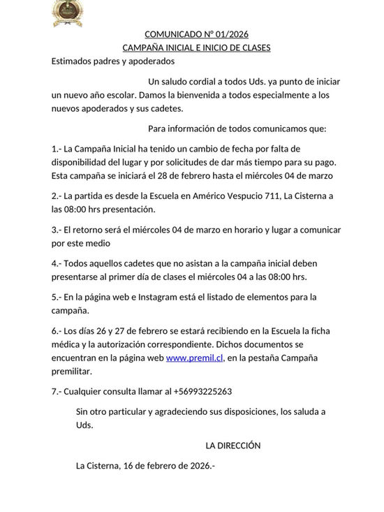 "El uniforme institucional es un signo destacable de pertenencia, adhesión y compromiso al PEI. Ligado al ámbito pedagógico el buen uso además tiene un valor formativo que refuerza el autocuidado y la identidad institucional...La buena utilización y la adecuada presentación personal, son reflejo del orden característico de una escuela premilitar " (RICE 2025 -2026).